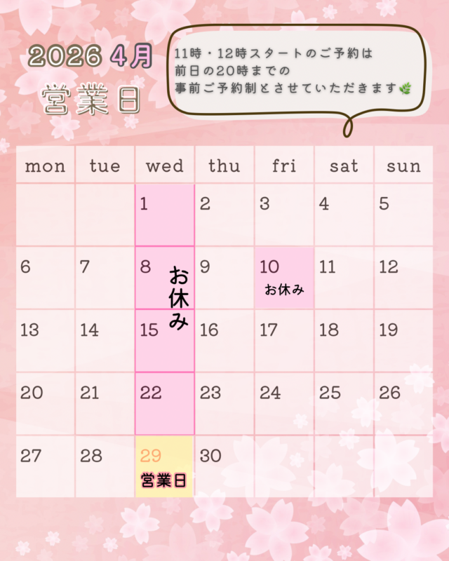 それでは4月の営業日のお知らせです🌸